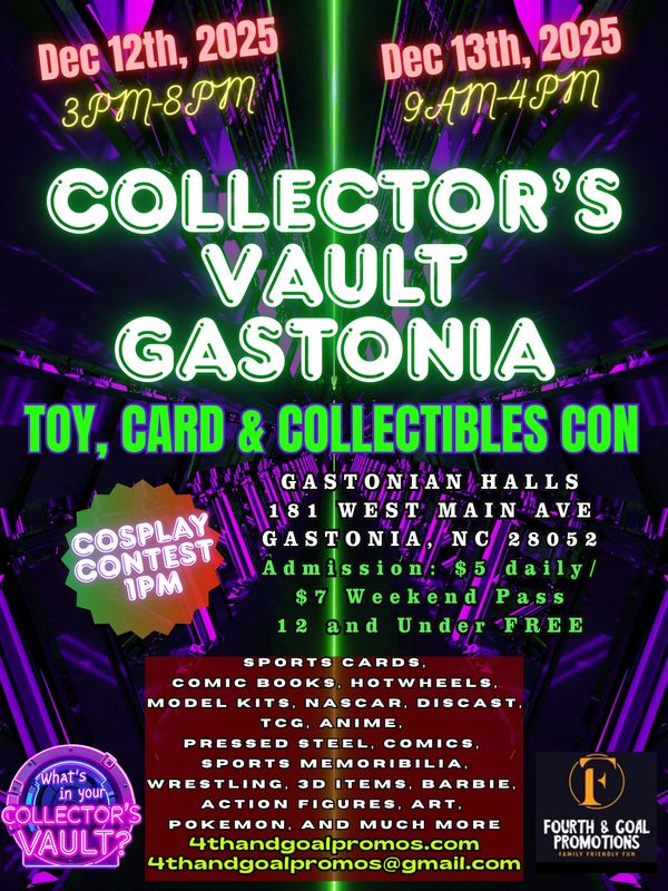 We are a promotional company that hosts exciting Toy and Collectibles Shows. Featuring autograph guests, these family-friendly events allow vendors to set up and sell a wide variety of products including Hot Wheels, wrestling items, NASCAR memorabilia, model kits, Barbies, diecast cars, custom shoes, Pokemon, sports cards and more.